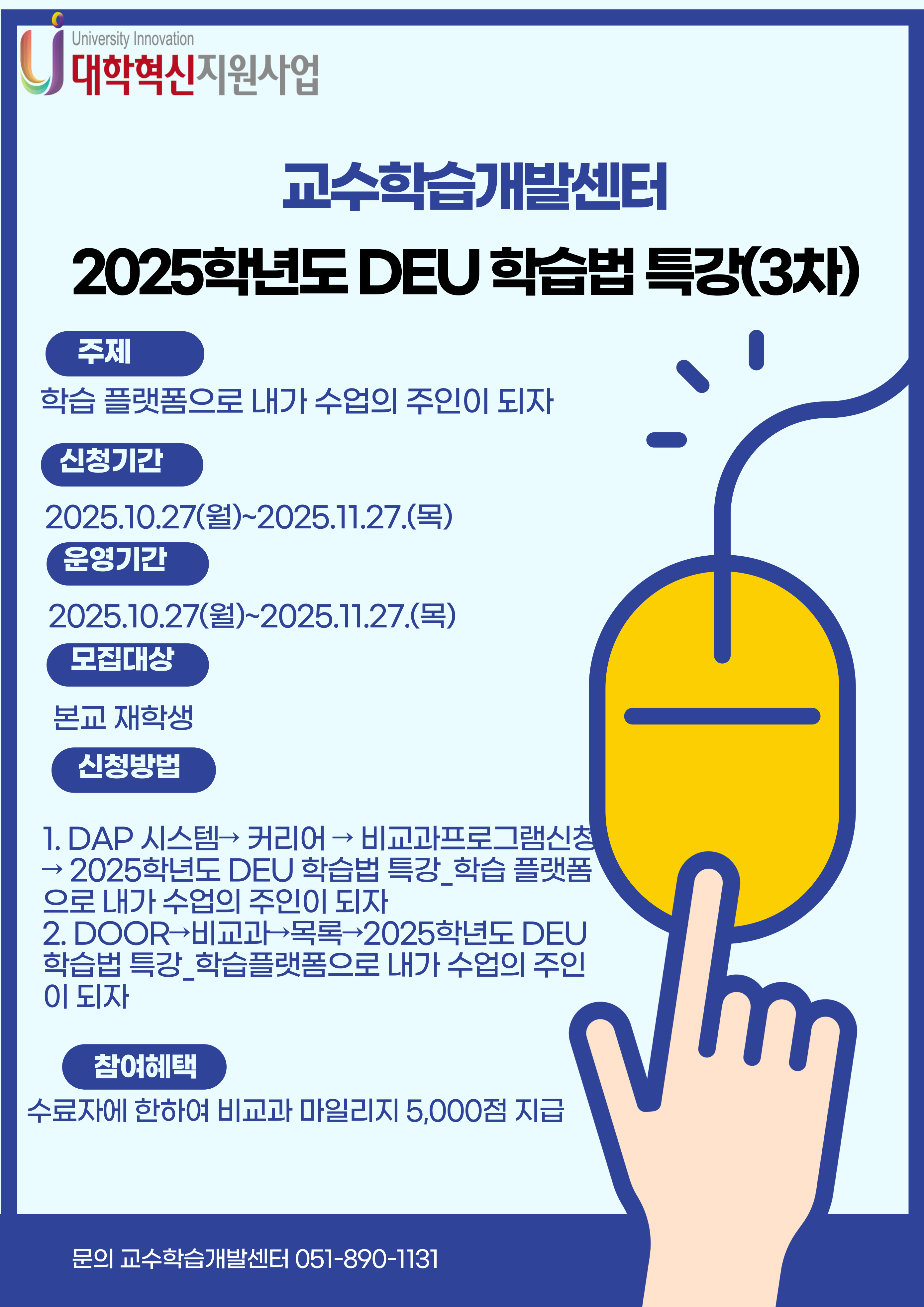 [대학혁신지원사업] 2025학년도 DEU 학습법 특강(3차) 신청 안내
